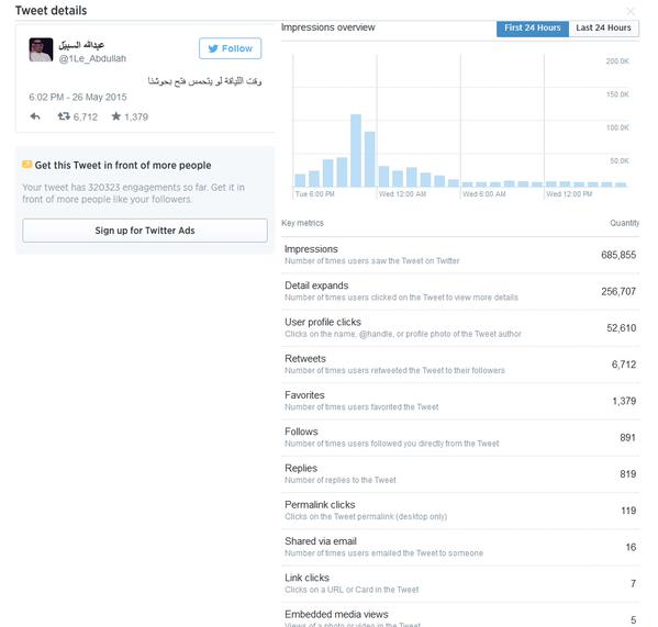تحديث :بعد مضي اربعة أيام على التغريدة زودني الاستاذ عبدالله السبيل مشكور بالإحصائيات الخاصة بالتغريدة