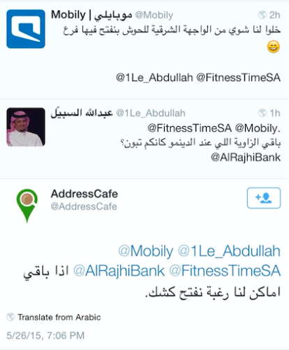 من أبرز ما حصل خلال الفترة الماضية في مواقع التواصل الإجتماعي تغريدة كتبها عبدالله السبيل ساخراً حول كثرة تواجد وقت اللياقة في كل مكان في المملكة .. التغريدة لم تتوقف عند هذا الحد كان حساب وقت اللياقة جاهزاً للرد على تغريدة عبدالله و طلبه العنوان الخاص ببيته .. هناك احتمالان ربما كان هناك اتفاق بين عبدالله و وقت اللياقة في طريقة الاعلان ( و هذا ما نفاه عبدالله في حديثه مع قناة العربية ) أو أن وقت اللياقة يبحث بشكل مستمر عن اسمه في تويترو الانترنت للتواصل مع العملاء و معرفة اراءهم في ما يقدمه من خدمات او