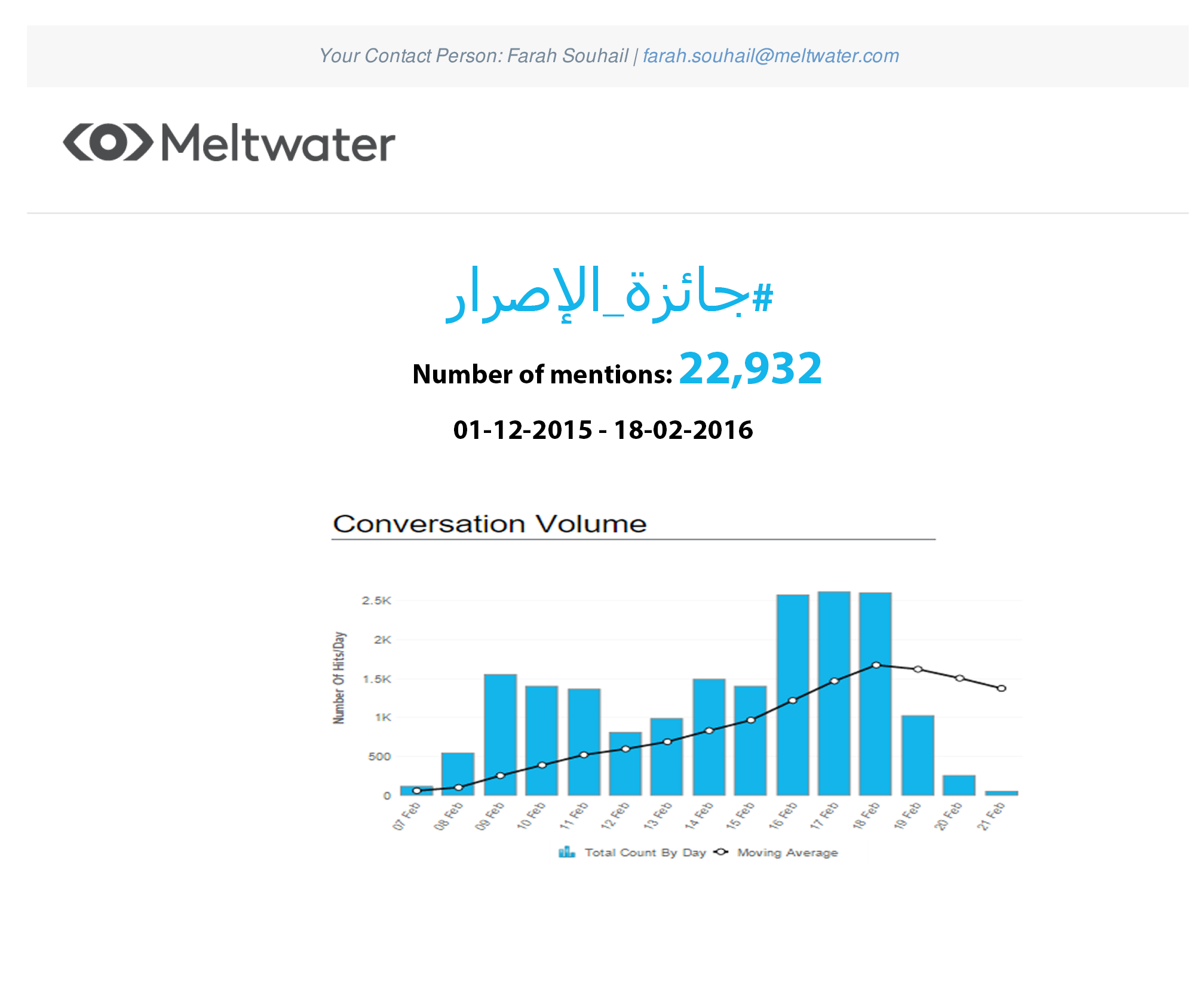 إطلاق جائزة الإصرار مروراً بنشرهم لقصص المرشحين مع طلبهم التصويت للمشاركين في موقع الجائزة و تم التأكيد